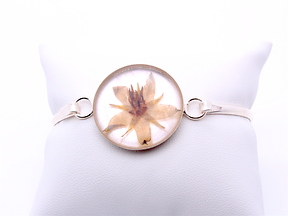Medium silver plated bracelet with genuine dried flower in resin. Hand-crafted by Dr. Laura.