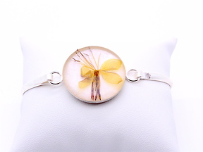 Large silver plated bracelet with genuine dried flower in resin. Hand-crafted by Dr. Laura.
